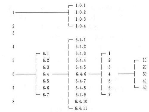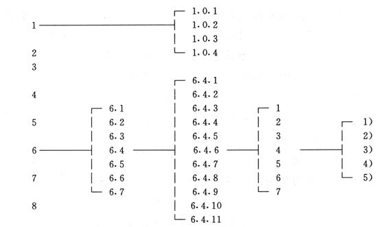 (1)工法的敘述層次按照章、節、條、款、項五個層次依次排列。“章”是工法的主要單元,“章”的編號后是“章”的題目,“章”的題目是工法所含11部分的題目;“條”是工法的基本單元。編號示例說明如下: