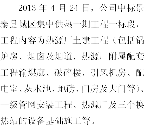公司中標景泰縣城區集中供熱一期工程