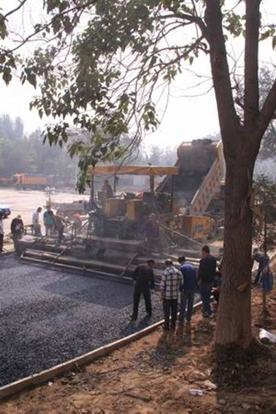圖1—2為攤鋪機械正在跑道上進行鋪設作業的場景