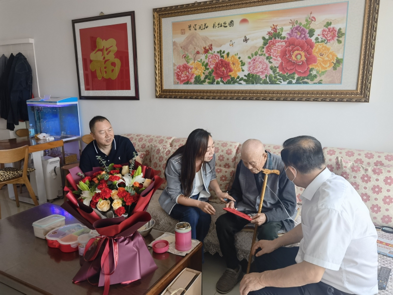 “馬上過節了,一個是國慶節、一個是重陽節,我們專門過來看望您,祝您節日快樂”,省委老干部局領導向老人轉達了省委省政府的關心問候,和他親切交談,祝福老人健康長壽。