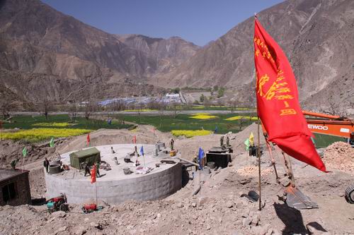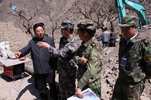 4月12日,公司黨委書記胡德生和甘肅預備役高炮師第一團政委陳德強一行前往舟曲慰問公司舟曲項目經理部災后援建一線施工人員。公司作為預備役預編單位,甘肅預備役高炮師第一團在公司舟曲項目經理部成立了第一支“甘肅預備役高炮師第一團舟曲災后重建突擊隊”,陳政委向突擊隊長鄭勇升授旗。
